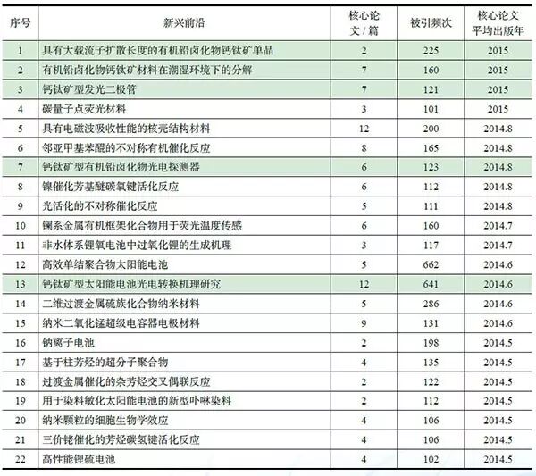 重点新兴前沿—— 钙钛矿相关6个研究前沿综合分析