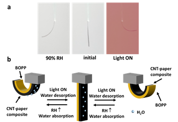 文献链接:Zhou P., Chen L*, et al. Humidity- and light-driven actuators based on carbon nanotube-coated paper and polymer composite, Nanoscale, 2018, 10, 8422.