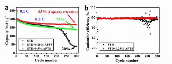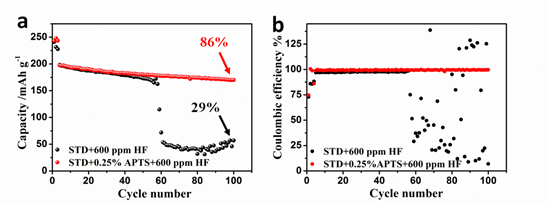 1.APTS作为新型添加剂有效消除了电解液中有害的HF酸