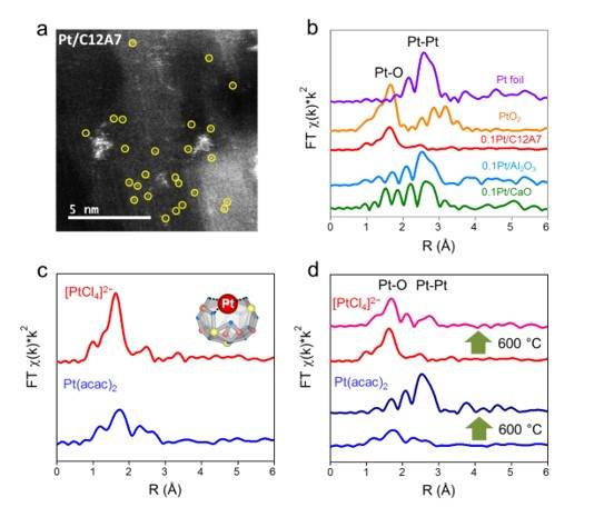 图2Pt/C12A7单原子催化剂的表征和对比分析