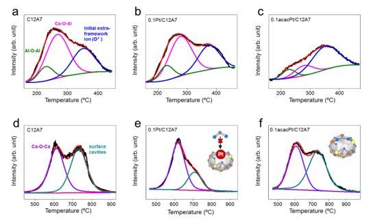 (b,e) 0.1Pt/C12A7的CO2-TPD谱图。