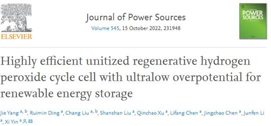 [3] J. Yang, R. Ding, C. Liu, S. Liu, Q. Xu, L. Chen, J. Chen, J. Li, X. Yin, Highly Efficient Unitized Regenerative Hydrogen Peroxide Cycle Cell with Ultra-Low Overpotential for Renewable Energy Storage.J. Power Sources,2022, 545: 231948.