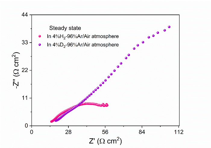 图3 GDC电解质燃料电池的同位素效应