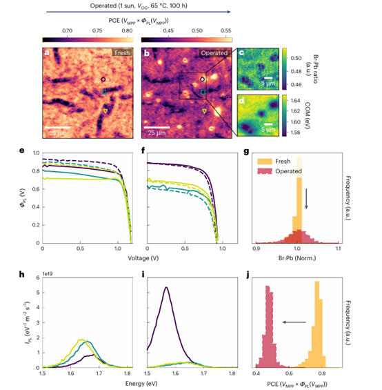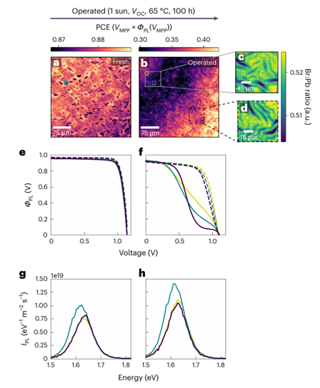 图1 器件操作显微镜显示,DCDH 太阳能电池的性能甚至可以承受剧烈的空间光电和化学异质性 ©2024 Springer Nature