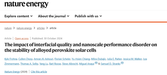 The impact of interfacial quality and nanoscale performance disorder on the stability of alloyed perovskite solar cells. Nature Energy (2024).