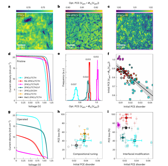 图4 界面化学和空间 PCE 紊乱可预测混合阳离子、混合卤化物过氧化物太阳能电池的性能和稳定性 ©2024 Springer Nature